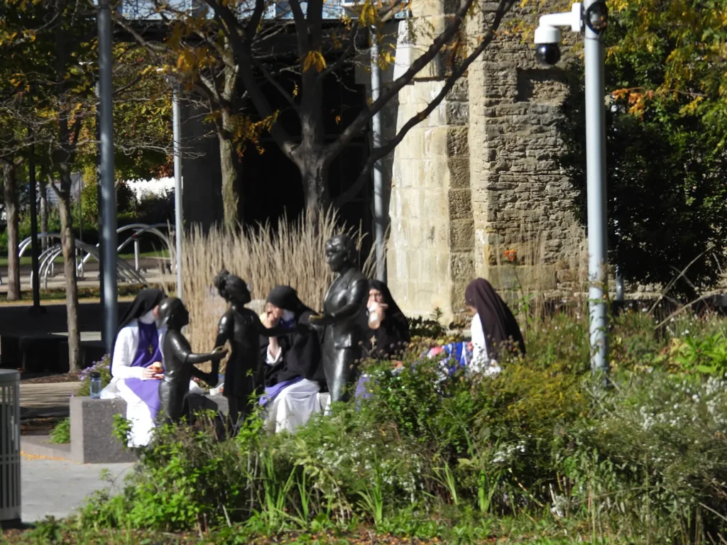 Enjoying lunch with the Marian Spencer statue.
